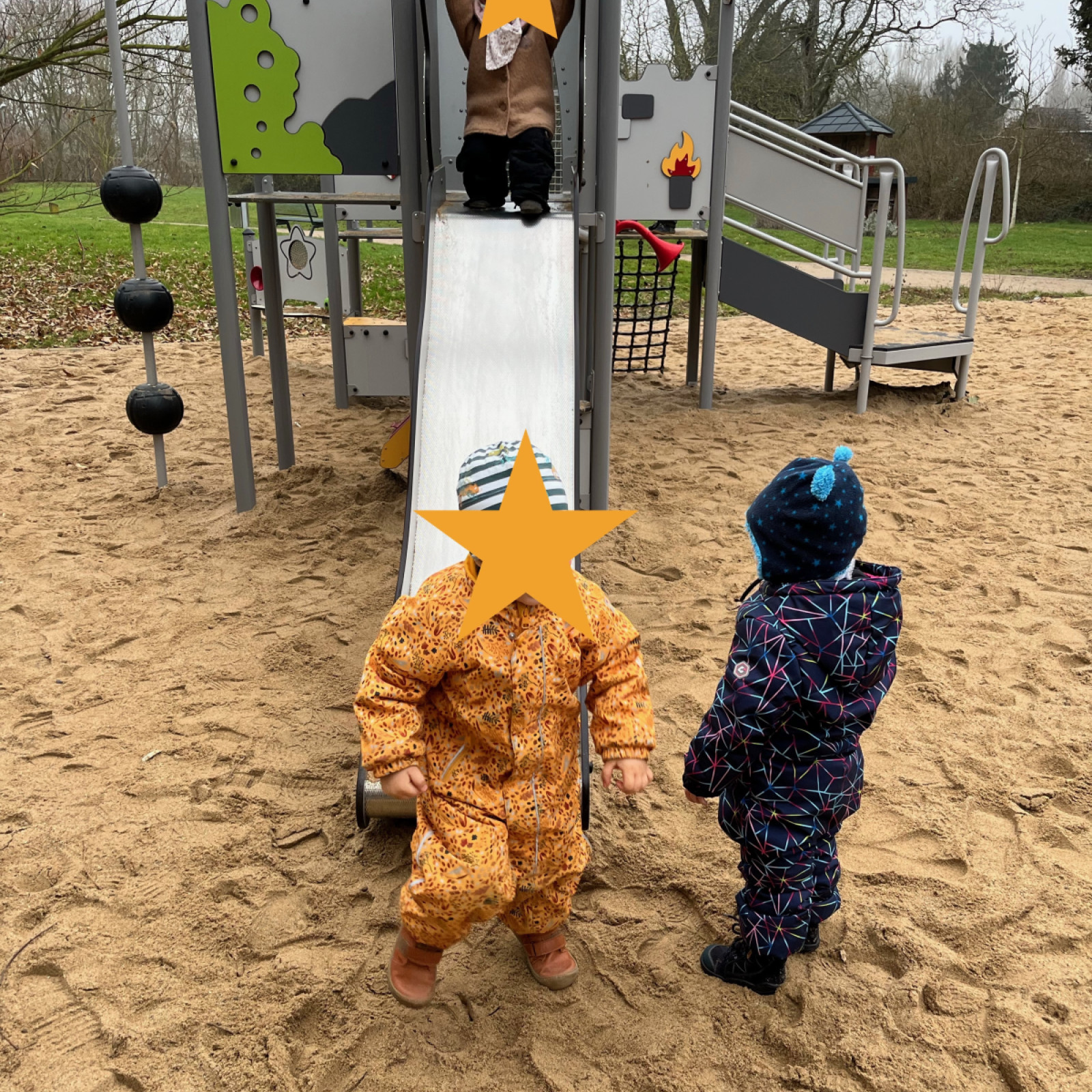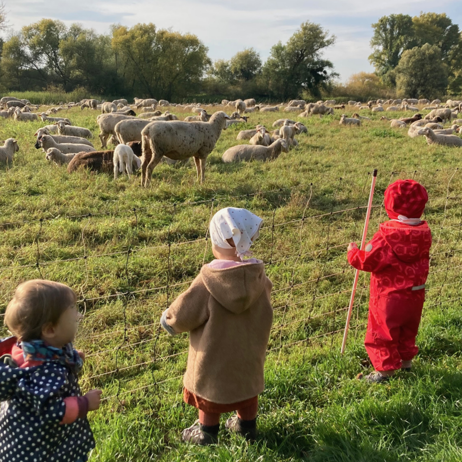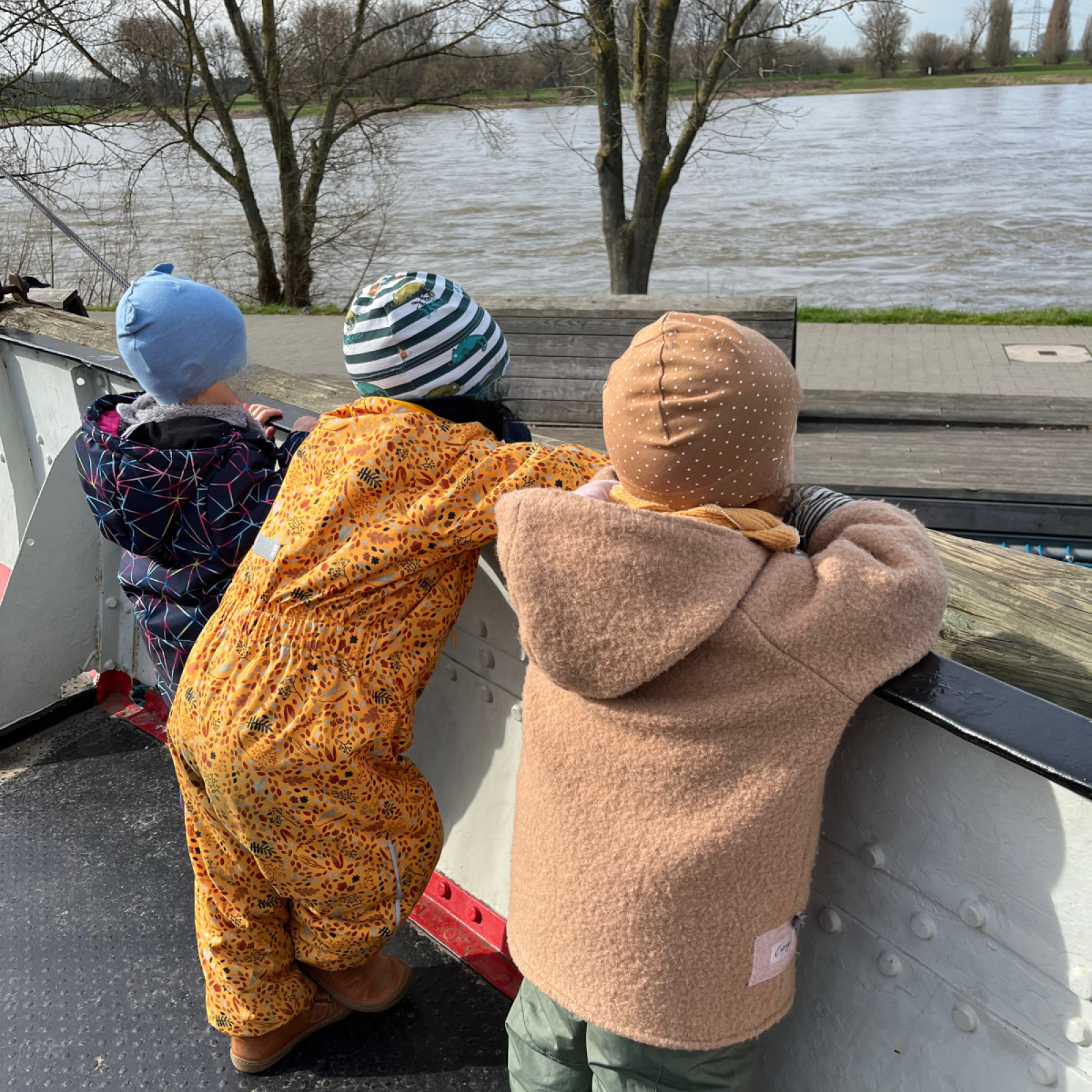 Für kleine Kinder ist der gesamte Tag ein spannender Lernprozess: Wir frühstücken, spielen, malen, lesen, singen, basteln, tanzen... oder wir gehen in den Garten zum Rutschen, Klettern... oder wir erkunden die Stadt und machen Ausflüge zum Wochenmarkt, zum Spielplatz, zur Bücherei... oder wir nehmen das Lastenrad und fahren in die Rheinauen, zu den Pferden, Schafen, Kühen oder doch lieber zum Aalshokker.